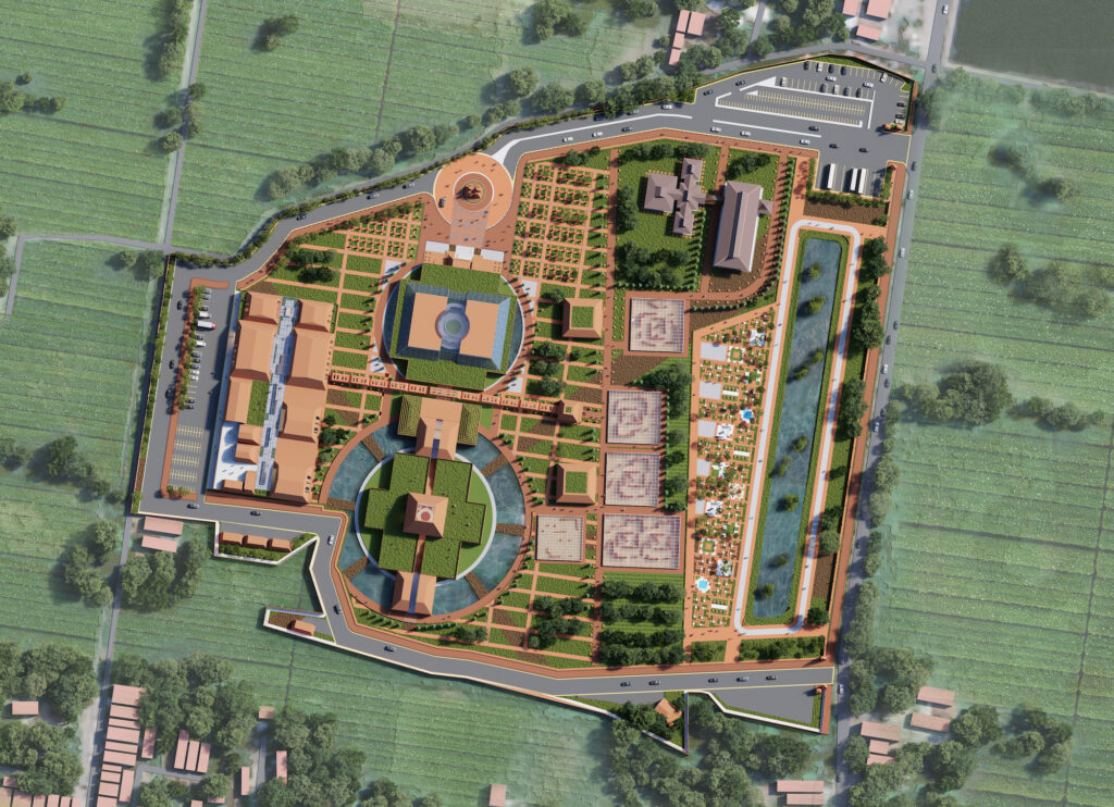 Masterplan disusun dengan pola grid yang kuat dan terukur, merefleksikan keteraturan kosmologis dan sistem tata kota masa lampau. Orientasi kawasan diarahkan ke delapan penjuru mata angin, merujuk pada filosofi mandala serta konektivitas ke titik-titik penting pusat peradaban Majapahit lainnya. Komposisi ini menegaskan hubungan antara arsitektur, lanskap, dan makna simbolik menghadirkan harmoni antara ruang fisik dan nilai historis.