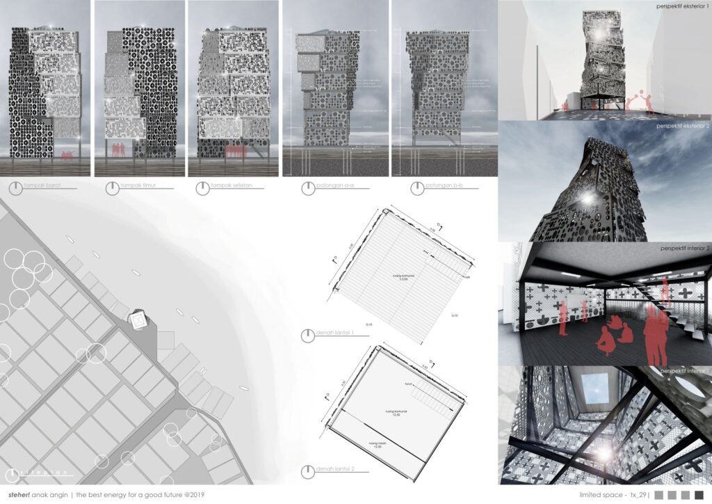Bangunan ini dirancang sebagai respons terhadap dinamika tersebut. Ia tidak hanya berfungsi sebagai ruang fisik untuk beraktivitas, tetapi juga sebagai sistem yang adaptif dan mandiri secara energi. Melalui pendekatan desain berkelanjutan, bangunan memaksimalkan pencahayaan dan penghawaan alami, memanfaatkan energi surya sebagai sumber listrik alternatif, serta mengintegrasikan pengelolaan air hujan dan ruang hijau sebagai bagian dari ekosistemnya.