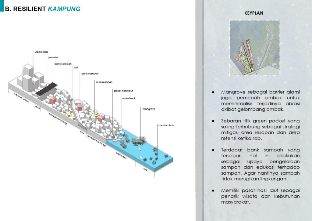 Melalui pendekatan perancangan yang adaptif, kontekstual, dan berkelanjutan, Konsep Tambak Lorok Coastal Resilience diharapkan dapat bertransformasi dari kawasan rentan menjadi pemukiman pesisir yang tangguh bencana sebuah kampung nelayan yang tetap hidup, produktif, dan bermartabat di tengah tantangan lingkungan yang terus berkembang.